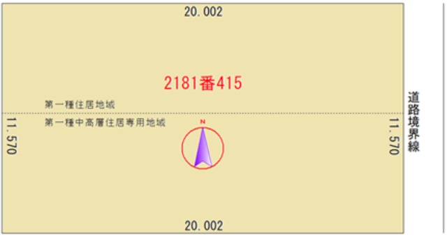 | 用途地域 | 第一種中高層住居専用地域・第一住居地域(またがり) |
