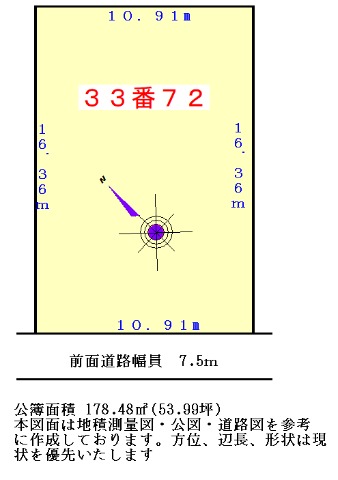| 土地面積(公簿) | 178.48 ㎡( 53.99坪 ) |