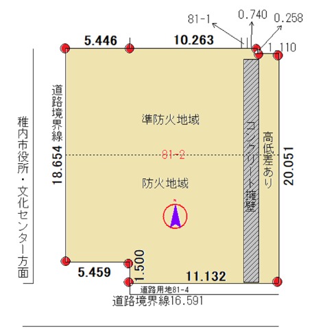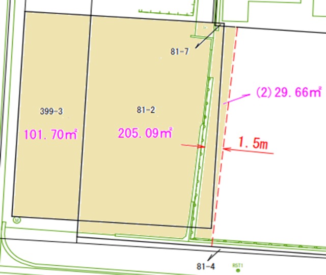 | 備考 | 令和5年12月13日81番7と81番9と399番3えを81番2に合筆済 敷地内擁壁含み売買となります 擁壁より離れ最大1.5mとします 警戒地区該当 土砂災害警戒地域土石流 建蔽率緩和あり 南側防火地域 北側準防火地域 平坦 裏面高低差あり 整地等は致しません 土地現況渡し アーケド街の土地は売買致しません |